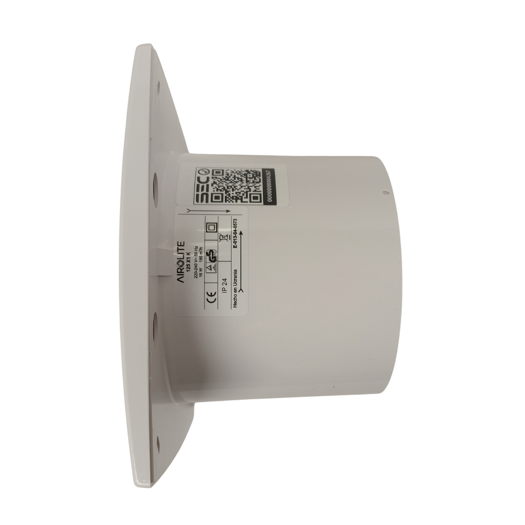 El Airolite 125 X1K es un extractor de aire de alto rendimiento, diseñado para baños y espacios que requieren una ventilación eficiente y constante. Su diseño moderno y compacto lo convierte en un accesorio funcional y discreto para el hogar.