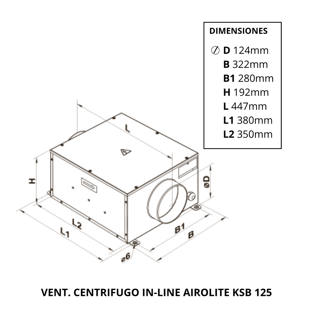 El Airolite KSB 125 es un ventilador centrífugo en línea de alto rendimiento, diseñado para instalación en conductos redondos. Su diseño compacto y carcasa con aislamiento acústico lo convierten en una solución ideal para sistemas de ventilación que requieren bajo nivel sonoro y alta eficiencia, especialmente en aplicaciones residenciales, comerciales y oficinas.Equipado con un impulsor de álabes curvados hacia atrás y un motor AC de rotor externo, el KSB 125 garantiza una operación silenciosa, confiable y de larga duración. Su estructura metálica con revestimiento polimérico ofrece resistencia y durabilidad en ambientes exigentes.Airolite KSB 125 – Ventilador Centrífugo en Línea con Aislamiento Acústico