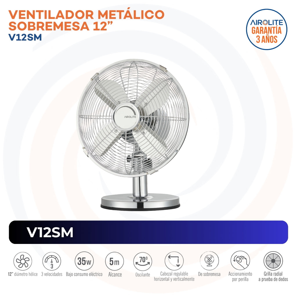 Perfecto para colocar en tu sala, oficina o dormitorio, el V12SM Airolite Metal no solo refrescará tus días, sino que también se convertirá en un elemento decorativo que llamará la atención de todos.