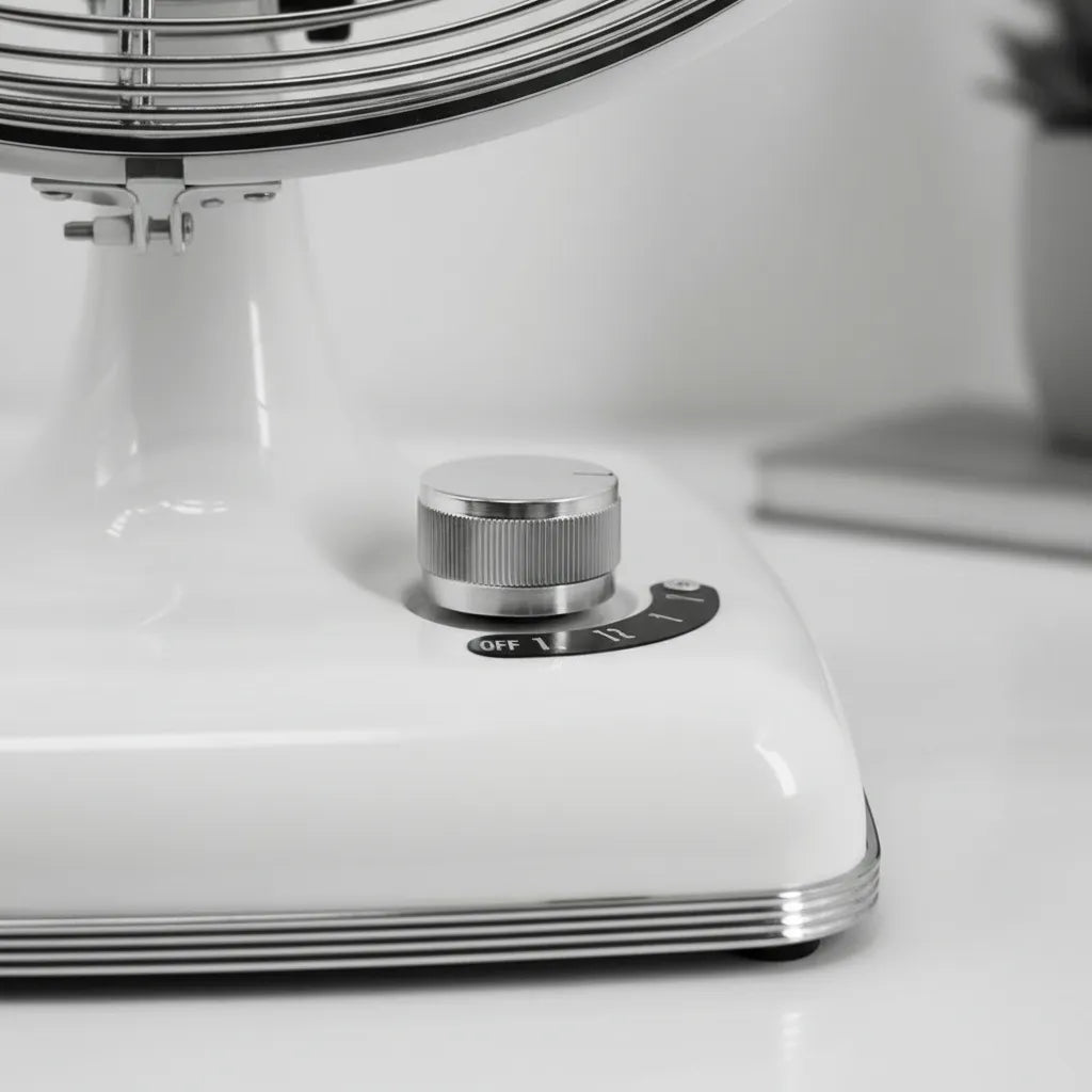Con un diseño vintage en tonos verde y blanco, este ventilador de sobremesa evoca el encanto de décadas pasadas, fusionando estética retro con tecnología moderna. Su estructura robusta y acabados cuidadosamente seleccionados lo convierten en una pieza decorativa y funcional, ideal para quienes valoran el estilo sin renunciar al confort.