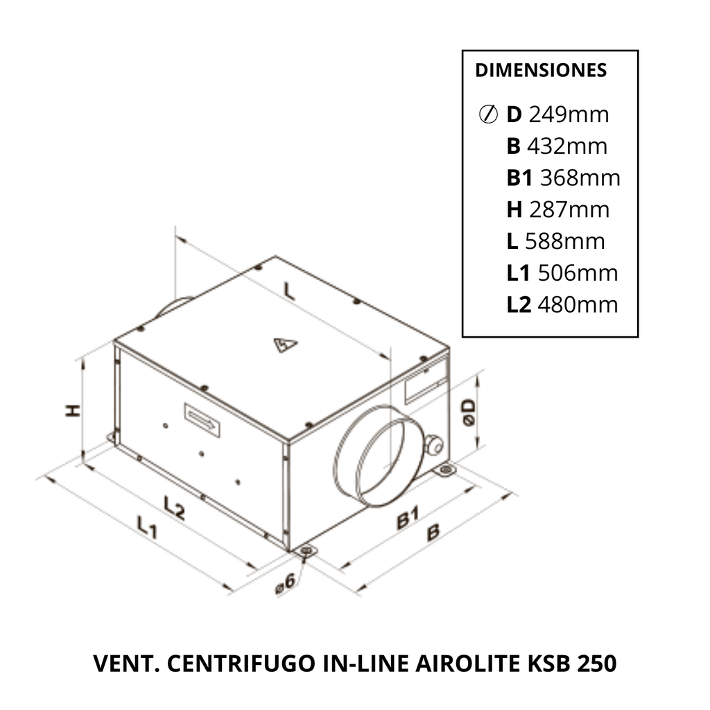 Airolite KSB 250 – Ventilador Centrífugo en Línea con Aislamiento Acústico